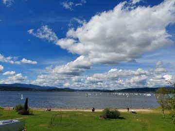 Lipno je legendární lokalita na windsurfing, navíc v kempu je skvělá dlouhá pláž. Když uděláte chybu tak se nic neděje, zaparkujete s prknem o kus dál.