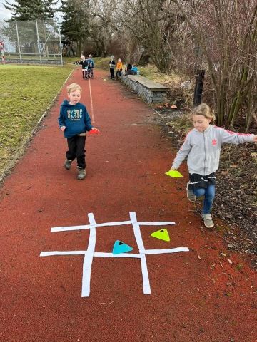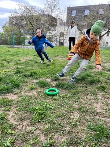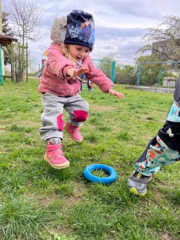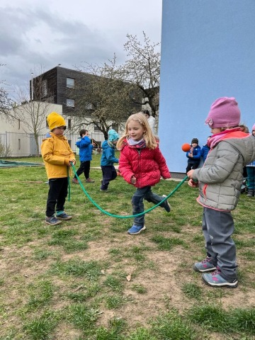 Kroužek se odehrává na zahradě MŠ Slunéčko, Naskové 5. I v zimním období chodí děti sportovat ven.